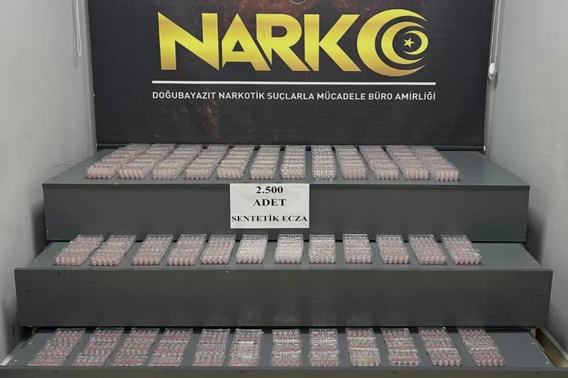 Yapılan aramalarda toplam 2 bin 500 adet sentetik ecza maddesi ele geçirildi.