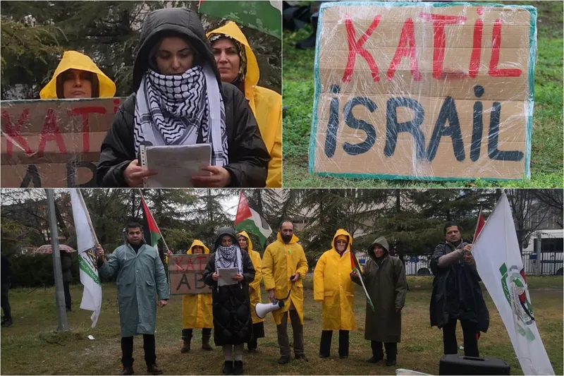 Ankara’da ABD Ankara Büyükelçiliği önünde bir araya gelen Organizasyon Gazze Nöbeti Grubu üyeleri, Gazze’de devam eden saldırılar ile ABD’nin işgal politikalarına verdiği desteği protesto etti.