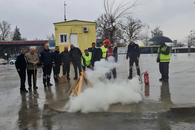 Uzman eğitmenler tarafından verilen eğitimde, olası kaza ve yangın durumlarında uygulanması gereken müdahale yöntemleri detaylı şekilde anlatıldı.