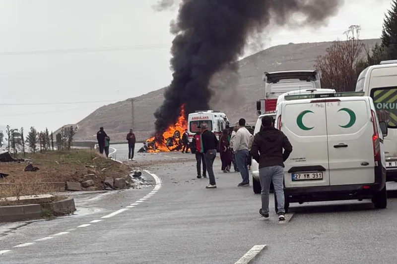 Kazanın ardından araçta yangın çıktı.