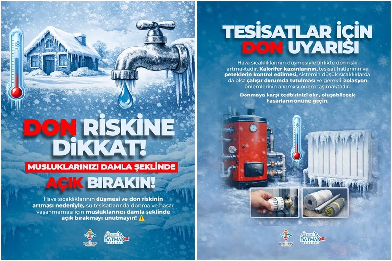 Batman Belediyesi, meteorolojik veriler doğrultusunda il genelinde etkili olan soğuk hava koşulları nedeniyle su tesisatları ve sayaçlarda donma riskine dikkat çekti.