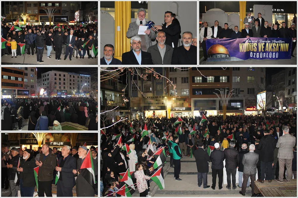 "Bugün burada, sadece bir bölgenin değil, tüm insanlığın vicdan durağı olan Kudüs, Mescid-i Aksa ve Gazze’de yaşanan soykırıma dur demek; bu beldeleri elde etme adına, siyonist yayılmacılığın küresel barışı nasıl bir uçuruma sürüklediğine dikkat çekmek ve İslam coğrafyasının dört bir yanında yakılan fitne ateşine karşı vahdeti haykırmak için toplanmış bulunmaktayız.
