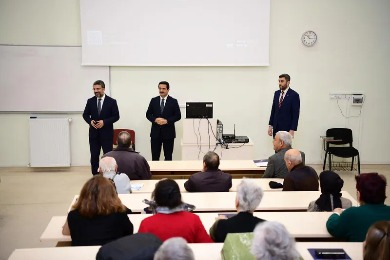 Rektörlük makamındaki görüşmenin ardından Belediye Başkanı Taşkın, üniversite bünyesinde faaliyet gösteren ve ileri yaş grubundaki vatandaşların sosyal hayata katılımını hedefleyen "60 Yaş Tazelenme Üniversitesi" kursiyerleriyle buluştu.