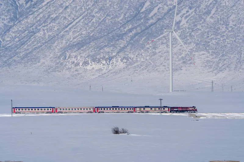 Karla kaplanan geniş ova üzerinde süzülen tren, beyaz örtüyle bütünleşen doğanın içinde adeta bir kartpostalı andıran görüntüler ortaya çıkardı.