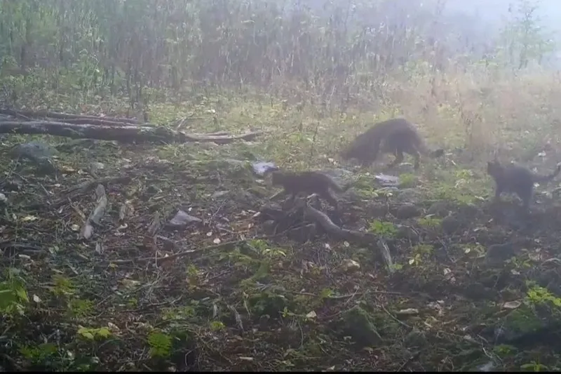 Bursa Doğa Koruma ve Milli Parklar Genel Müdürlüğü 2’nci Bölge Müdürlüğü tarafından ormanlık alana yerleştirilen foto kapanlar, sisli bir ormanda yavrularına rehberlik eden anne yaban kedisini görüntüledi.
