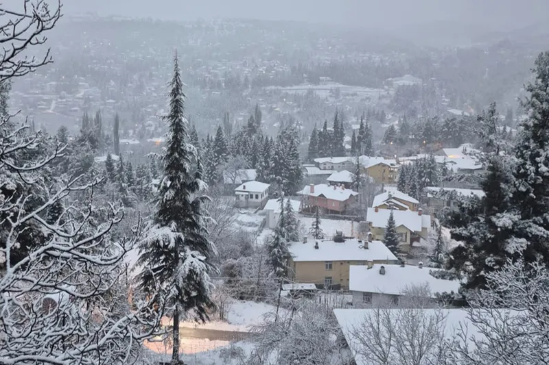 Kar yağışıyla birlikte doğa adeta kartpostallık görüntülere sahne olurken, çam ormanları ve yerleşim alanları beyaza büründü.