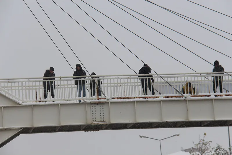Üst geçitten atılan kar topları nedeniyle sürücülerin görüş açısı aniden kapanırken, araçlarda ani fren ve manevralar dikkat çekti.