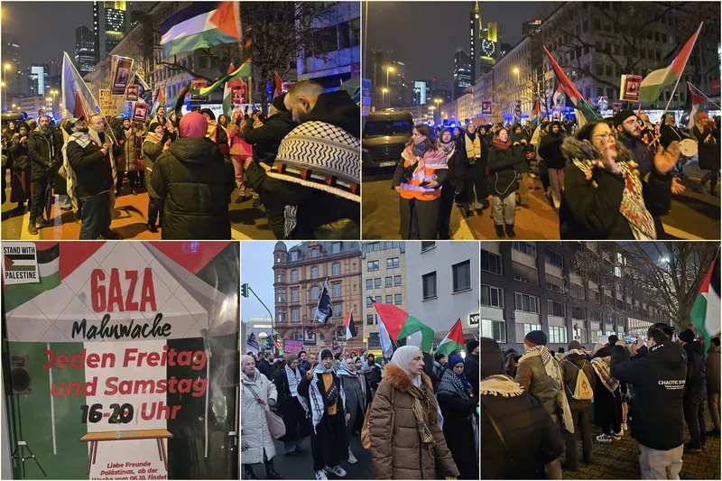 Şu anda, Frankfurt polis karakolunun önünde çok sayıda kişi, haksız yere alıkonulduğunu belirttikleri Dr. Mahmud Ebu Odeh’in serbest bırakılması talebiyle toplanmış durumda.