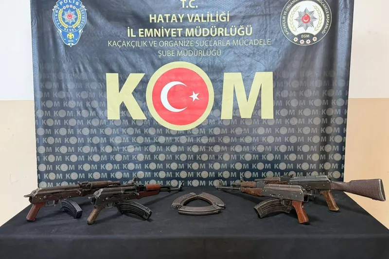 İl Emniyet Müdürlüğü ekipleri, Reyhanlı-Antakya istikameti Paşaköy mevkiinde durdurulan araçta yaptıkları kontrolde, araçtan atılmış çuval içinde 4 adet AK-47 Kalaşnikof marka otomatik tüfek ve 7 adet AK-47 şarjörü ele geçirdi.