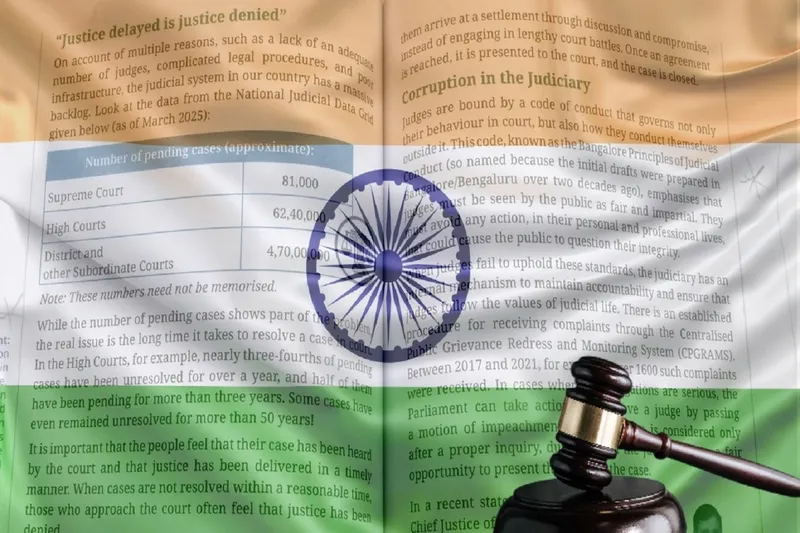 Sekizinci sınıf sosyal bilgiler ders kitabında yer alan “Toplumumuzda Yargının Rolü” başlıklı bölümde, yargının çeşitli kademelerinde yolsuzluk iddialarına ve mahkemelerdeki devasa dava yığılmasına dikkat çekilmişti. Resmi verilere göre Hindistan’daki mahkemelerde 53 milyondan fazla dava beklemede bulunuyor.