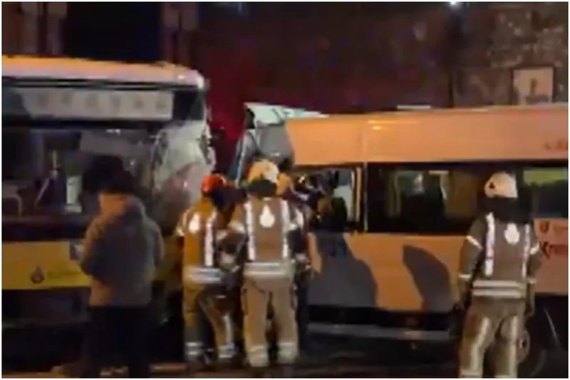 Yıldız Mahallesi Çırağan Caddesi'nde seyreden 34 HD 2363 plakalı İETT otobüsü ile 34 LEJ 531 plakalı servis minibüsü çarpıştı.
