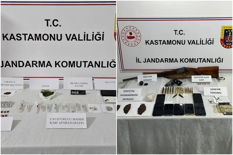 Şüphelilerin adreslerinde yapılan aramalarda, 416 gram metamfetamin, 45 gram kubar esrar, 3 gram kenevir tohumu, 940 gram bonzai/sentetik kannabinoid katkılı tütün, 54 gram bonzai/sentetik kannabinoid ham maddesi, 22 uyuşturucu kullanma aparatı, 2 hassas terazi, 88 bin 100 lira nakit para, 3 tabanca, 97 tabanca mermisi, 3 av tüfeği ve 28 cep telefonu ele geçirildi.