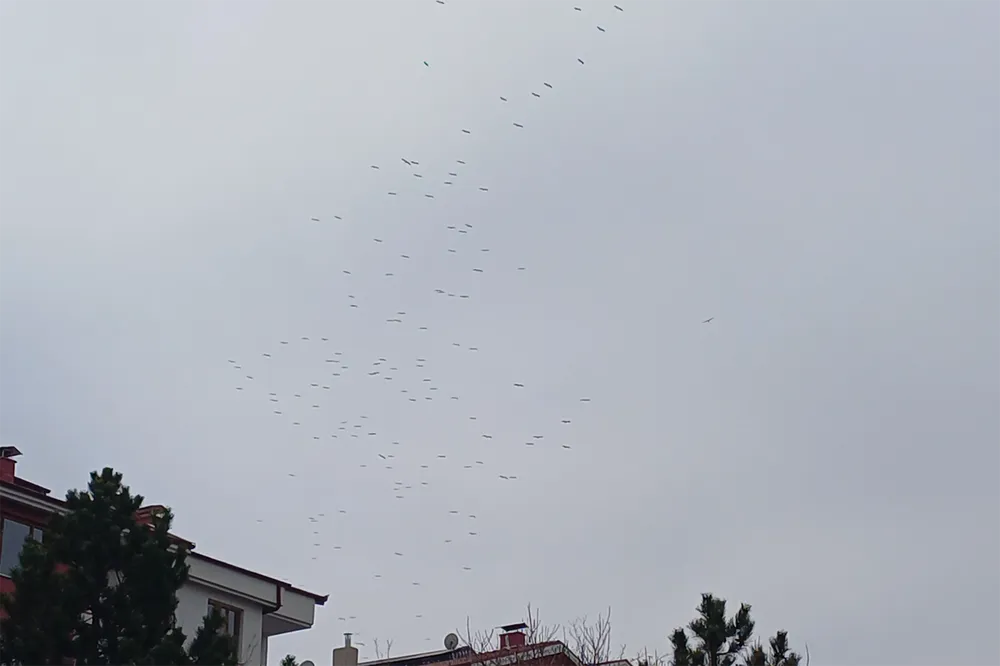 Konya’da baharın habercisi olarak bilinen leylekler sürü halinde gökyüzünde görüntülendi.
