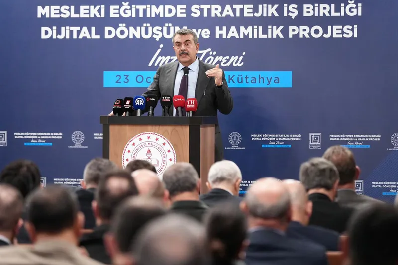 Kütahya’da düzenlenen imza töreninde konuşan Bakan Tekin, mesleki ve teknik eğitimin sanayinin ihtiyaçlarıyla daha güçlü şekilde buluşturulmasının hedeflendiğini belirtti.