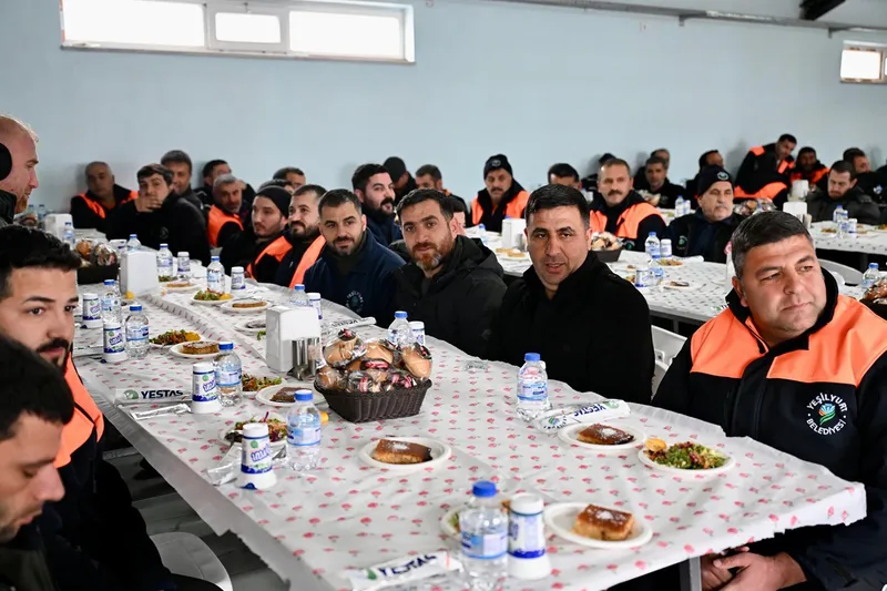 Ziyaret, Fen İşleri Müdürlüğü yemekhanesinde gerçekleştirildi. Programda bilgi veren Yeşilyurt Belediye Başkan Yardımcısı Mehmet Cüreoğlu, kar yağışının etkili olduğu günlerde ilçe genelinde çalışmaların aralıksız sürdüğünü belirtti.