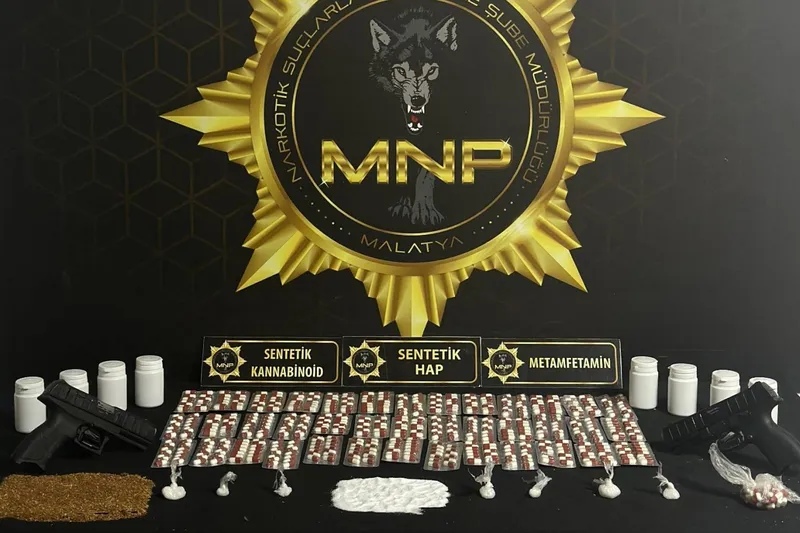 Yapılan teknik ve fiziki çalışmaların ardından belirlenen adreslere operasyon düzenlendi. 7 ikamet, 1 araç ve 10 şüpheli üzerinde yapılan aramalarda bin 801 adet sentetik ecza hap, 38 gram sentetik kannabinoid, 42 gram metamfetamin ile 2 adet ruhsatsız tabanca ele geçirildi.