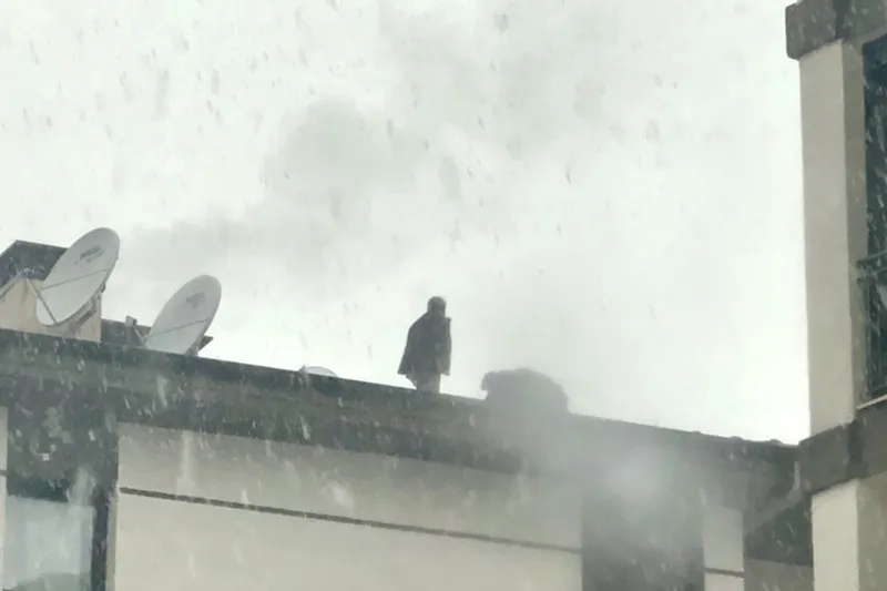 Çatıda bulunan işçi, polis ekipleri tarafından güvenli şekilde aşağı indirildi.