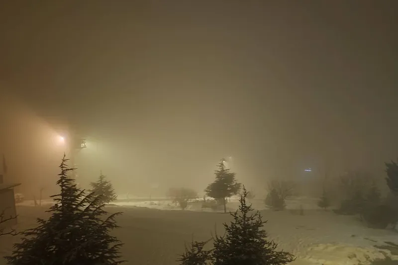 Akşam saatlerinde kar yağışı ile birlikte etkisini artıran sis, özellikle ana arterlerde ve yüksek bölgelerde görüş mesafesini neredeyse sıfıra düşürdü.