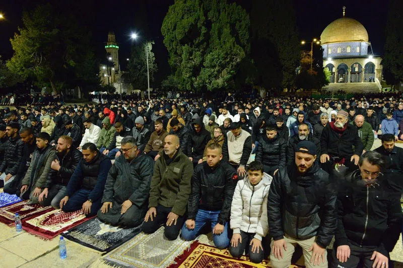 İşgal altındaki Kudüs'te bulunan Mescid-i Aksa, yine on binlerce mümini bağrına bastı. Kudüs Valiliği'nin açıkladığı verilere göre yaklaşık 50 bin kişi, tüm engellemelere rağmen akşam ve teravih namazlarını Aksa'nın avlusunda eda etti.