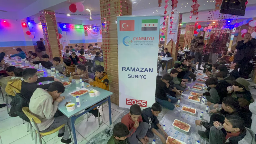 Cansuyu Yardımlaşma ve Dayanışma Derneği, 2026 yılı Ramazan ayı faaliyetleri kapsamında iç savaşın derin yaralar bıraktığı komşu ülke Suriye’nin Afrin bölgesinde anlamlı bir iftar programına imza attı. Savaşın gölgesinde büyüyen ve hayatın zorluklarıyla küçük yaşta tanışmak zorunda kalan bine yakın yetim çocuk için düzenlenen iftar programı, Ramazan ayının paylaşma, kardeşlik ve dayanışma ruhunu bir kez daha gözler önüne serdi.