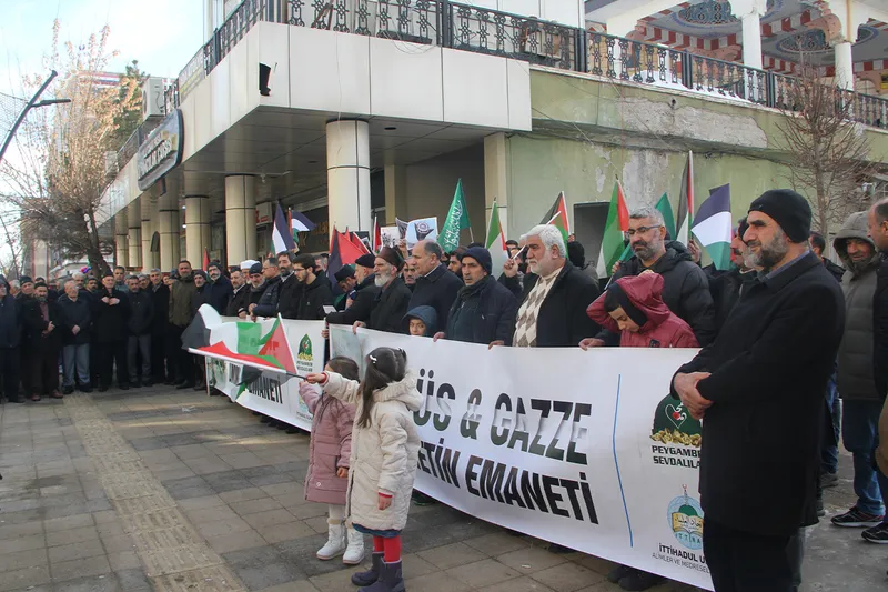 Bugün Gazze’de kuşatma altında inleyen her çocuk, Kudüs’te kuşatılan Mescid-i Aksa ile aynı acının içinde olduğunu aktaran Selami “Gazze, bugün dünyanın en büyük açık hava hapishanelerinden biridir. Ve bu hapishanede cezalandırılanlar, askerler değil; siviller, kadınlar ve çocuklardır. Gazze’de yaşanan her acı, Kudüs’te her kuşatma halkası aynı zihniyetin ürünüdür. Bu nedenle Kudüs’ü savunmak, Gazze’yi görmeden mümkün değildir. Yüce Rabbimiz Kur’an-ı Kerim’de, (İsrâ Suresi, 1. Ayet) “Kendisine ayetlerimizden bir kısmını göstermek için kulunu Mescid-i Haram’dan, çevresini mübarek kıldığımız Mescid-i Aksa’ya yürüten Allah, her türlü noksandan münezzehtir” buyurarak Kudüs’ün ve Mescid-i Aksa’nın bu ümmete emanet edildiğini açıkça bildirmiştir. Bu emanetin etrafında yaşanan her acı, sadece bir coğrafyanın değil; Ümmetin kalbinin’ acımasıdır. Resûlullah Efendimiz (Sallallahu Aleyhi Vesellem) ise bizlere, (Buhârî, Müslim) “Yolculuk ancak üç mescit için yapılır: Mescid-i Haram, benim mescidim ve Mescid-i Aksa” buyurarak Mescid-i Aksa’nın ümmet nezdindeki yerini asırlar öncesinden ilan etmiştir. Bugün Gazze’de kuşatma altında inleyen her çocuk, Kudüs’te kuşatılan Mescid-i Aksa ile aynı acının içindedir. Çünkü Gazze’ye takılan her halka, Kudüs’ü yalnızlaştırma çabasının bir parçasıdır. Kudüs de Gazze de aynı imanın, aynı emanetin ve aynı direnişin adıdır.” şeklinde konuştu.