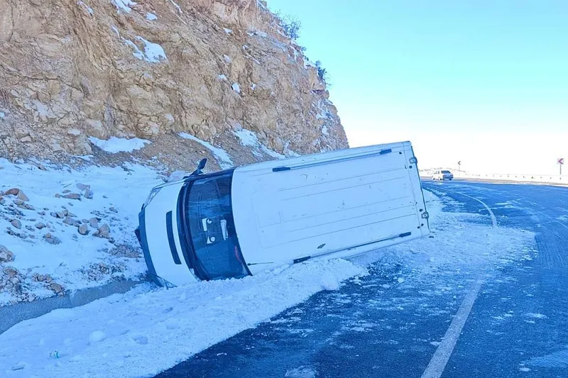Edinilen bilgilere göre, 56 AAK 580 plakalı araç, yol yüzeyinde oluşan buzlanma nedeniyle sürücüsünün direksiyon hâkimiyetini kaybetmesi sonucu kontrolden çıkarak devrildi.