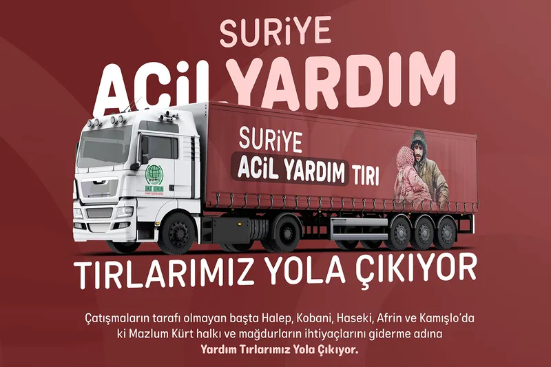 Çatışmaların tarafı olmayan Halep, Afrin, Kobani, Haseki ve Kamışlo'da ki mazlum ve mağdur kardeşlerimizin ihtiyaçlarını karşılamak için tırlarımız yola çıkıyor.