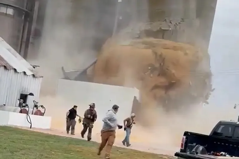 Illinois eyaletine bağlı Chicago'nun güneyindeki Martinton köyünde, soya fasulyesiyle dolu bir tahıl silosu çöktü, işçiler panikle kaçıştı.