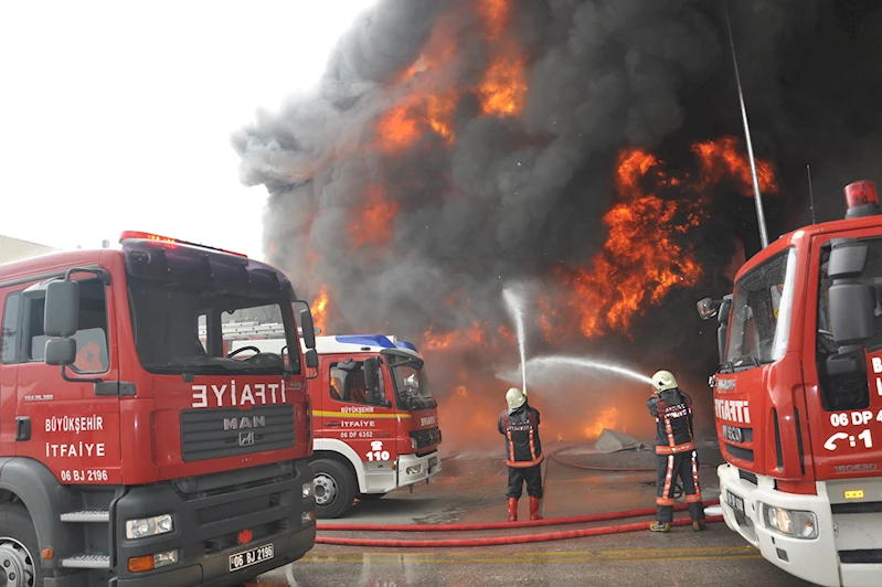 Ankara'nın Sincan ilçesi Organize Sanayi Bölgesi'nde, ahşap palet üretilen bir iş yerinde yangın çıktı.