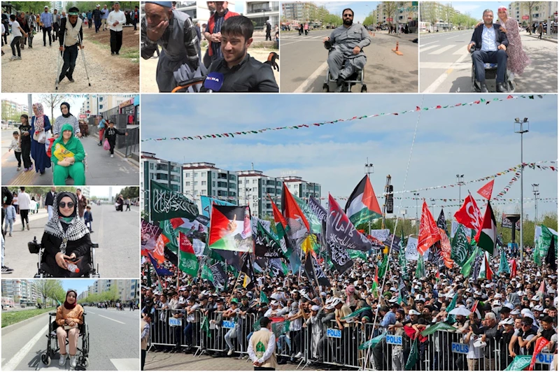 Diyarbakır'da Peygamber Sevdalıları Vakfı tarafından gerçekleştirilen "Direniş Önderi Hazreti Muhammed" temalı Mevlid-i Nebi etkinliğinde engel tanımayarak zorlukları aşarak gelen engelli bireyler Muhammedi sevdayla beraber Filistin davasına olan bağlılığını ifade ederken sarf edilen cümleler insanlığın düştüğü acziyeti gözler önüne serdi.