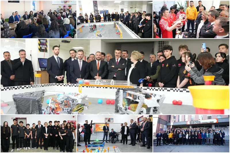 Bakan Tekin, okul binası girişinde bulunan dron takımı çalışma sahasını ziyaret ederek takımda bulunan öğrencilerle sohbet etti, yapılan çalışmalar hakkında okul müdürü Saadet Bektaş'tan bilgi aldı.