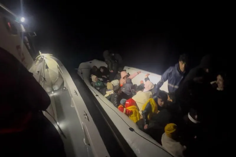 Balıkesir’in Ayvalık ilçesi açıklarında motor arızası nedeniyle sürüklenen lastik bottaki 36 düzensiz göçmen Sahil Güvenlik ekiplerince kurtarıldı.