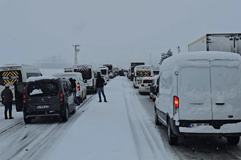 Yoğun kar ve buzlanma nedeniyle çok sayıda araç yolda mahsur kalırken, kimi araçlar ise ilerlemekte güçlük çekiyor.