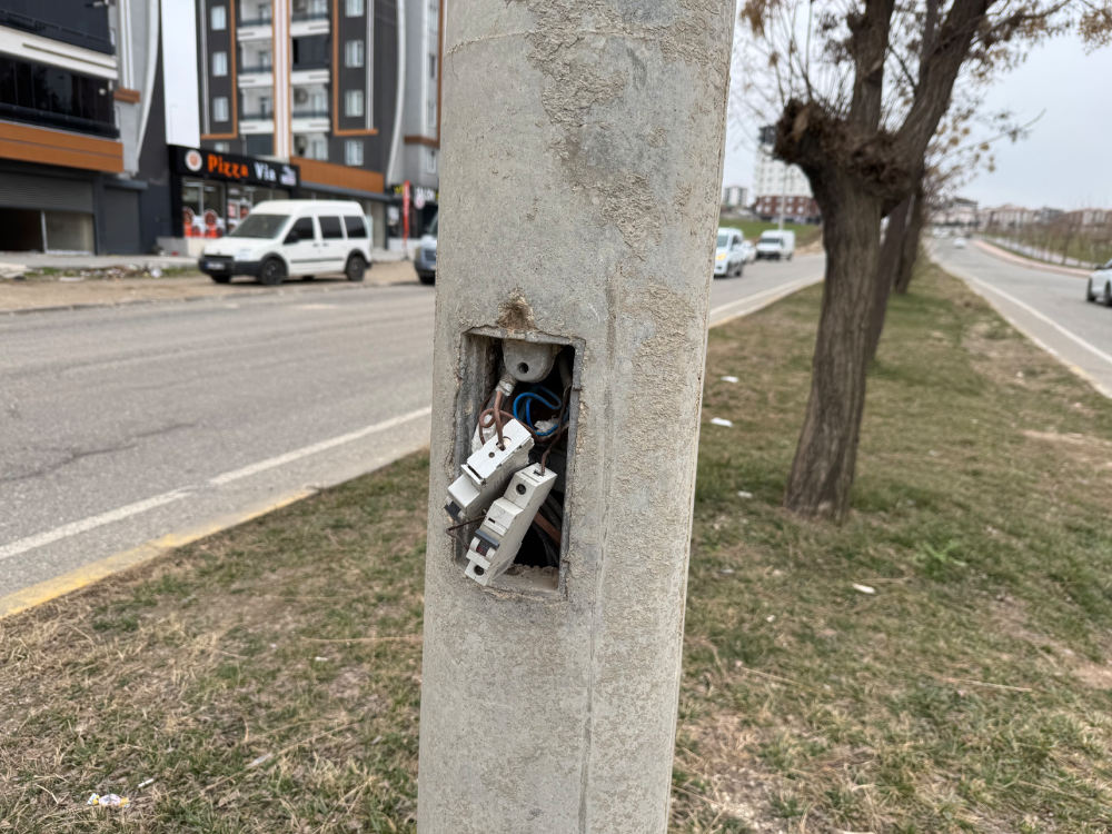 Batman Üniversitesi Bulvarı yolu üzerinde bulunan bir aydınlatma direğinin şalter ve kablolarının açıkta olması, vatandaşlar için ciddi bir tehlike oluşturuyor. Elektrik aksamının korumasız şekilde dışarıda bulunması, özellikle çocuklar ve yayalar açısından risk taşıyor.
