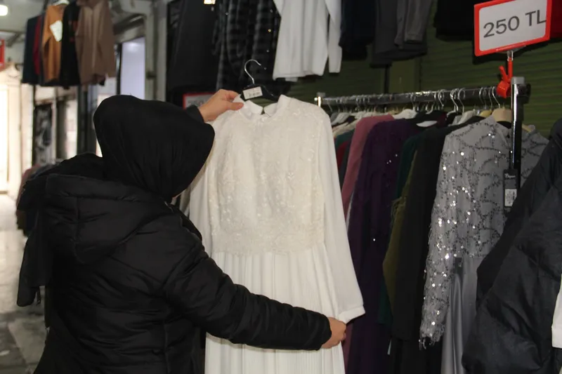 Satışa sundukları ürünlerin neden bu kadar uygun fiyatlı olduğunu belirten esnaf Ayla Yüzen, "Kıyafetimizi çok uygun fiyata sunuyoruz. Ürünler depolarda çürümesin, gelecek yıla kalıp zamlanmasın diye herkesin yararlanmasını istiyoruz. Üstlerimiz, alt-üst takımlarımız, sweatshirt kazaklarımız, eteklerimiz ve abiyelerimiz mevcut. Normalde her yerde 3–4 bin TL olan, hatta 2 bin TL’ye kiralanan abiyeleri burada 250 TL'ye satışa sunuyoruz. Artık depoya kaldırıp eskimesini istemiyoruz; herkes giysin istiyoruz. Bahar ayındayız, bayram yaklaşıyor ve şu anda fiyatlarımız çok uygun. Neredeyse alış fiyatına, hatta bazı ürünleri alış fiyatının altında satıyoruz. Örneğin 225 TL'ye aldığımız ürünleri 250 TL'ye veriyoruz." dedi.