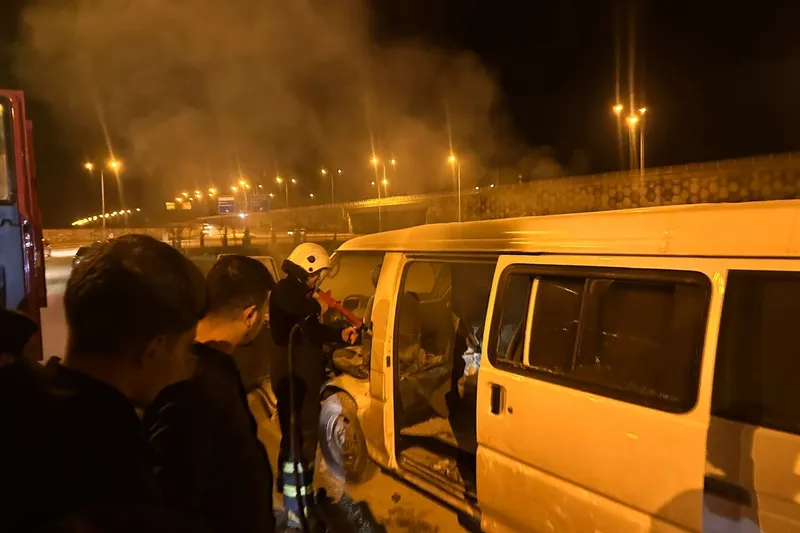Sürücüsü ve plakası henüz öğrenilemeyen panelvan tipi bir araç, seyir halindeyken henüz bilinmeyen bir nedenle alev aldı.