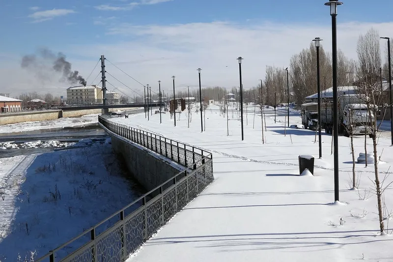 Kar yağışının etkili olduğu Ağrı'da tüm şehir beyaza büründü.