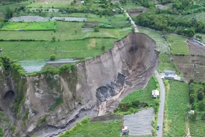 Endonezya'da meydana gelen devasa bir obruk, kısa sürede 30 bin metrekareden fazla alanı yuttu.