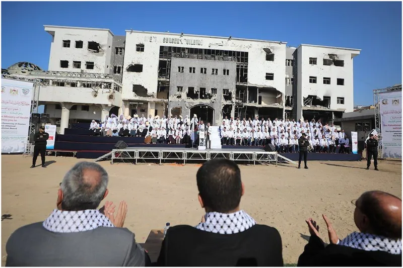 Gazze’de sağlık altyapısının ağır saldırılarla hedef alındığı bir dönemde, umut veren bir mezuniyet töreni gerçekleştirildi. Gazze Sağlık Bakanlığı, Gazze kentindeki El-Şifa Tıp Kompleksi’nin avlusunda Filistin Tıp Kurulu’ndan mezun olan doktorlar için diploma töreni düzenledi.