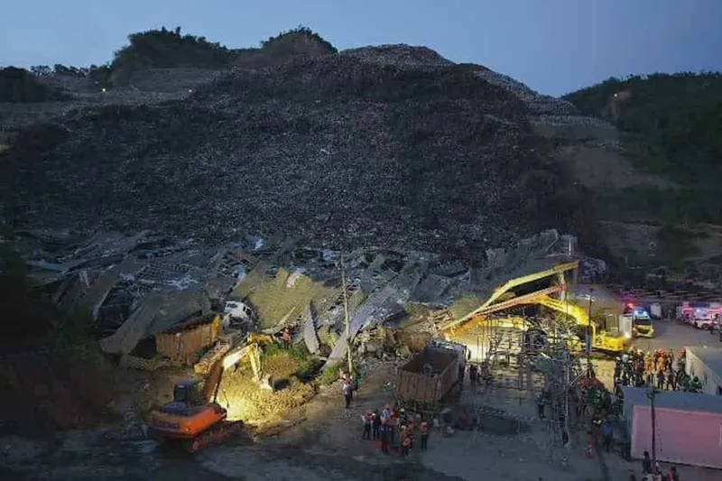 Yetkililere göre, dört katlı bina yüksekliğinde olduğu belirtilen çöp yığını, sahada çalışan çok sayıda temizlik işçisinin üzerine devrildi.