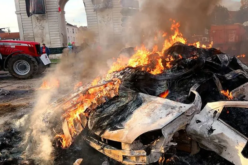 Çiftçiler A63 otoyolunda hız kameralarını söküp ateşe verdi, birçok kentte valilik ve kaymakamlık binalarına gübre döküldü.
