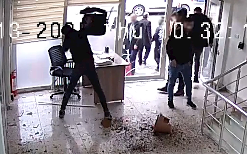 İlçe yöneticisine saldırarak güvenlik görevlisini darp eden saldırganlar, ölüm tehditleri savurarak hizmet binasına zarar verdi. Güvenlik görevlilerinin müdahalesi ile olaylar büyümeden önlenirken saldırganlardan 3 kişi gözaltına alındı.