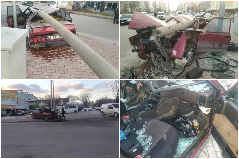 Karatay ilçesine bağlı Fevziçakmak Mahallesi’nde seyir halindeyken kontrolden çıkan bir otomobil, orta refüje çıkarak reklam tabelasına çarptı.