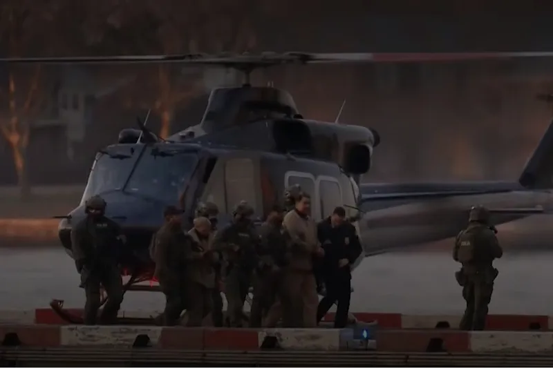 63 yaşındaki Maduro, kelepçelenmiş halde ve ağır silahlı çok sayıda güvenlik görevlisi eşliğinde helikopterde indirildi ve zırhlı araca götürüldü.