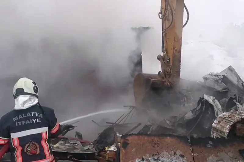 Edinilen bilgiye göre, Battalgazi ilçesindeki bir TOKİ şantiye alanında bulunan depo bölümünde henüz belirlenemeyen bir nedenle yangın çıktı. Alevler biran da depoyu sardı.