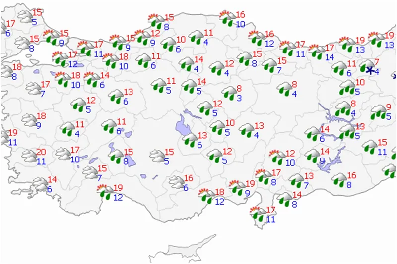 Marmara, Ege, İç Anadolu, Akdeniz ve Güneydoğu Anadolu bölgelerinde sağanak yağış beklenirken, Doğu Anadolu Bölgesi’nde karla karışık yağmur ve kar yağışının etkili olacağı tahmin ediliyor.