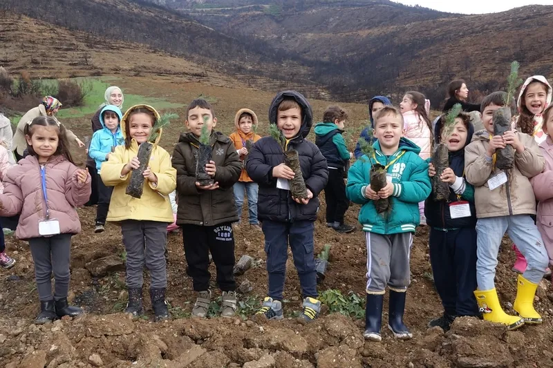 Törenin ardından katılımcılarla birlikte yangından etkilenen alana 30 bin fidan dikimi gerçekleştirildi.
