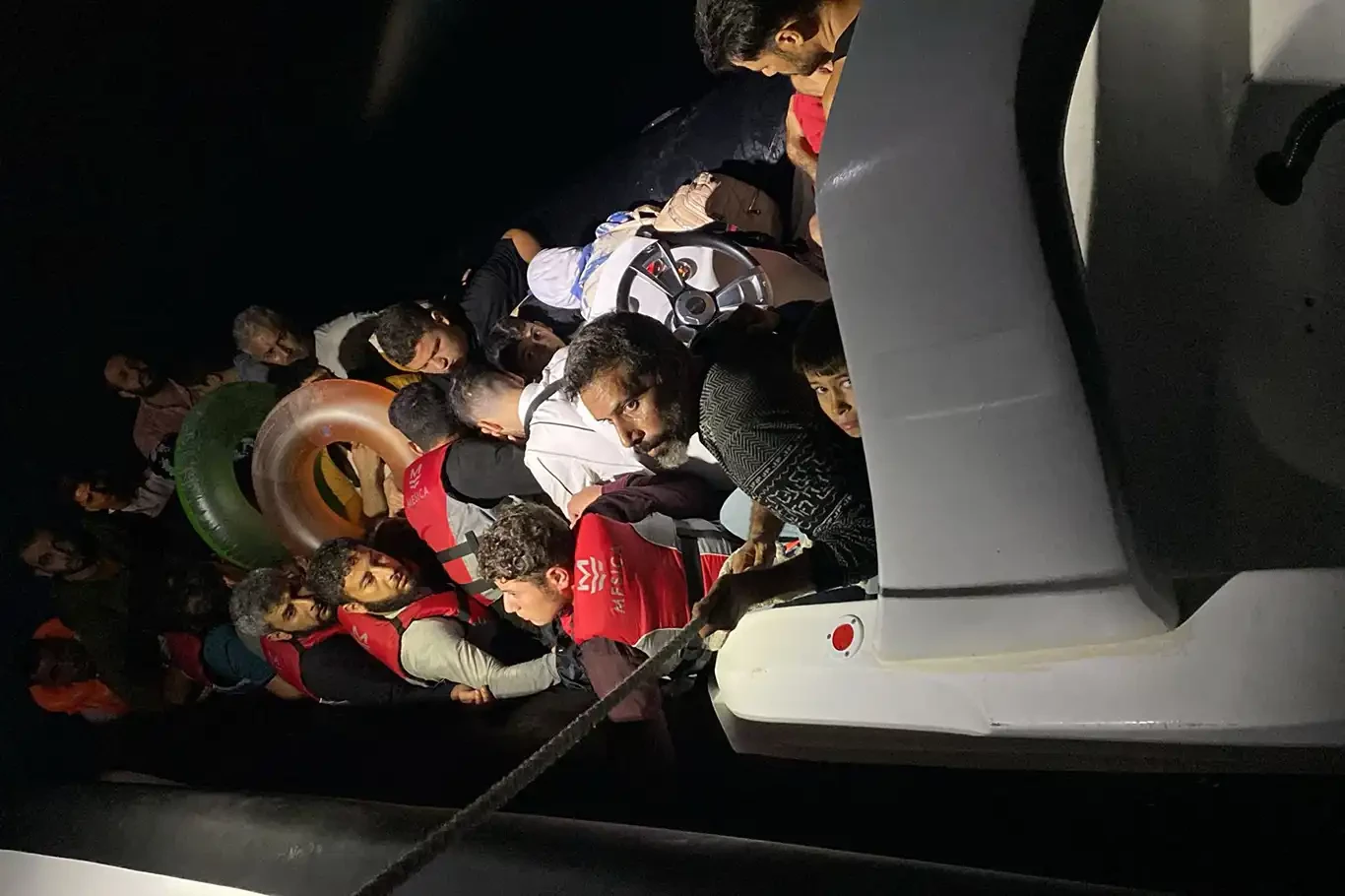 Sahil Güvenlik Komutanlığı ekipleri, Fethiye ilçesi açıklarında lastik botta 3'ü çocuk 14 düzensiz göçmeni yakaladı.