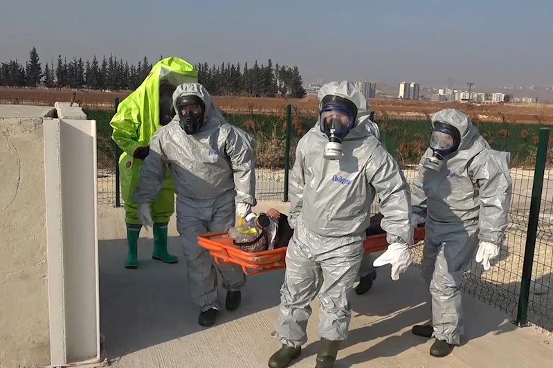 Tatbikat kapsamında, senaryo gereği kimyasal madde bulaşan bir hastaya sıcak alanda ilk müdahale yapıldı. Hasta, triaj alanına alınarak ılık alandaki yıkama ünitesinde dekontaminasyon işlemi tamamlandıktan sonra hastaneye sevk edildi.