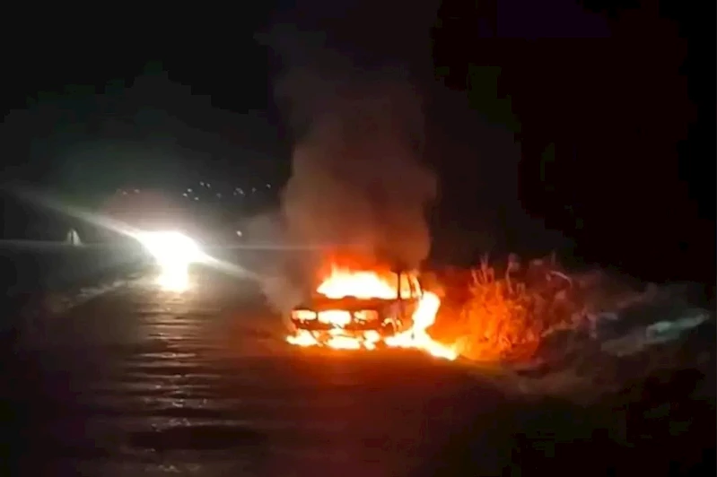 Yangın sonucu otomobil kullanılamaz hale geldi.